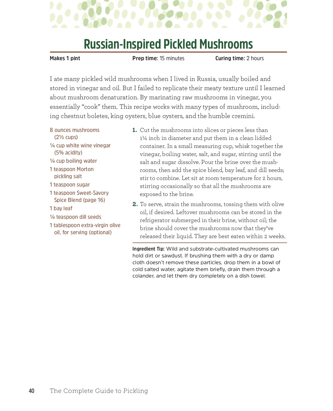 Ready to give pickled mushrooms a try? Full details are in the recipe, taken straight from The Complete Guide to Pickling, but here are the basics: